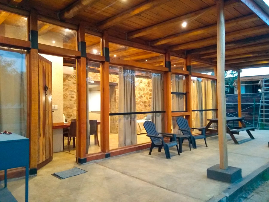 Todas las cabañas tienen galerías grandes, muy lindas.